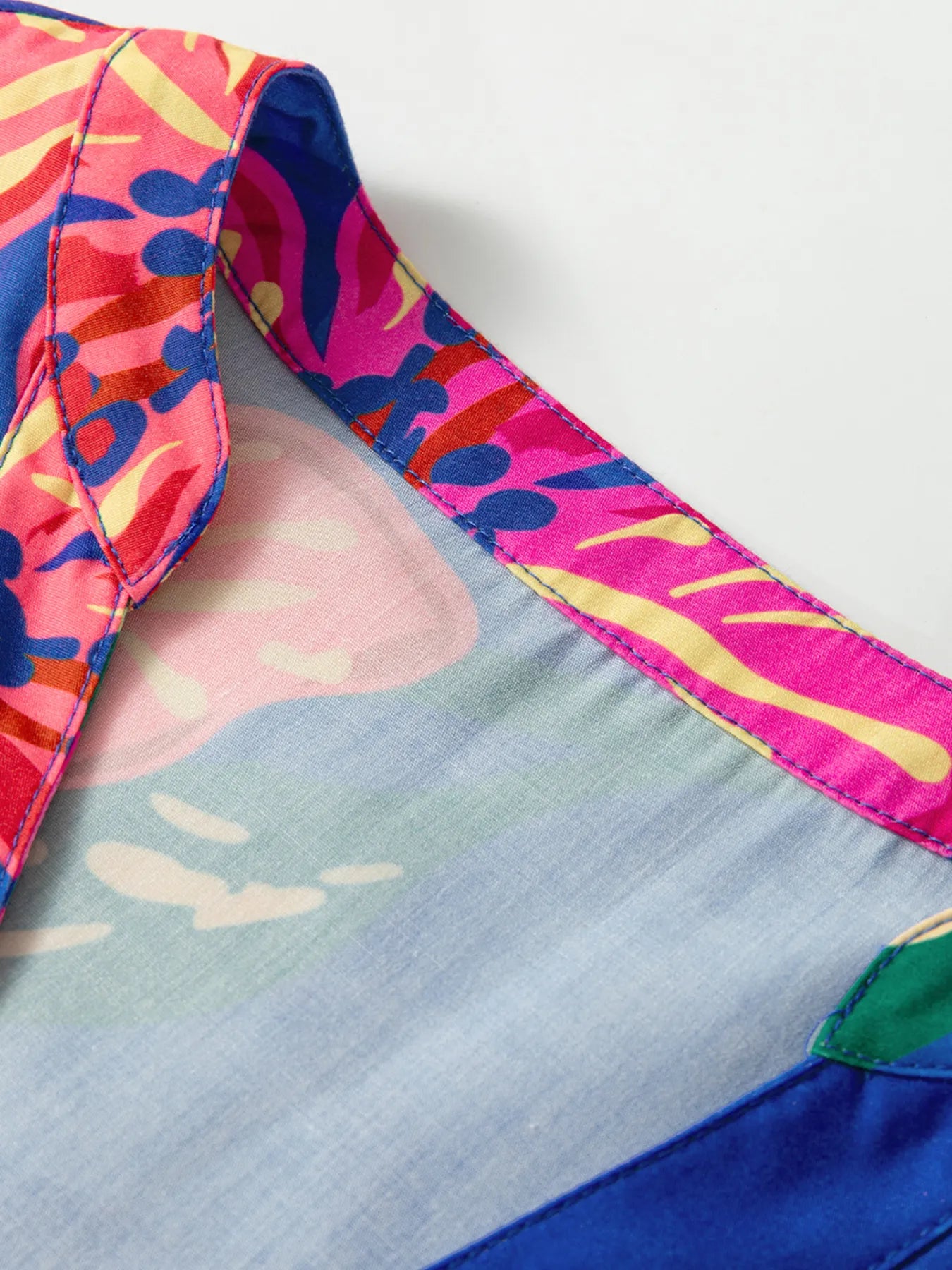 Floral Print 3/4 Sleeve V Neck Tiered Dress