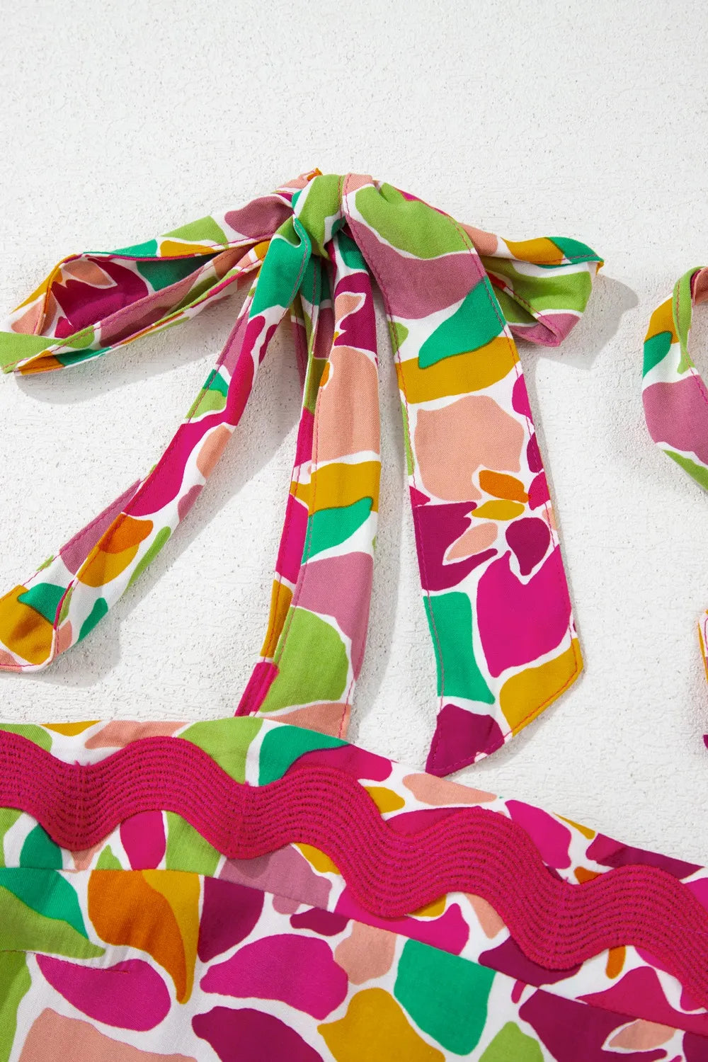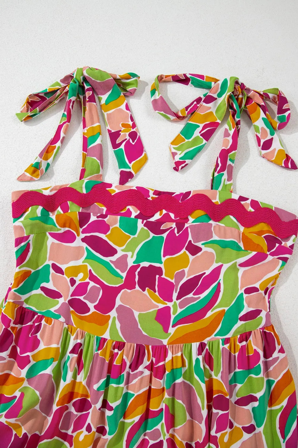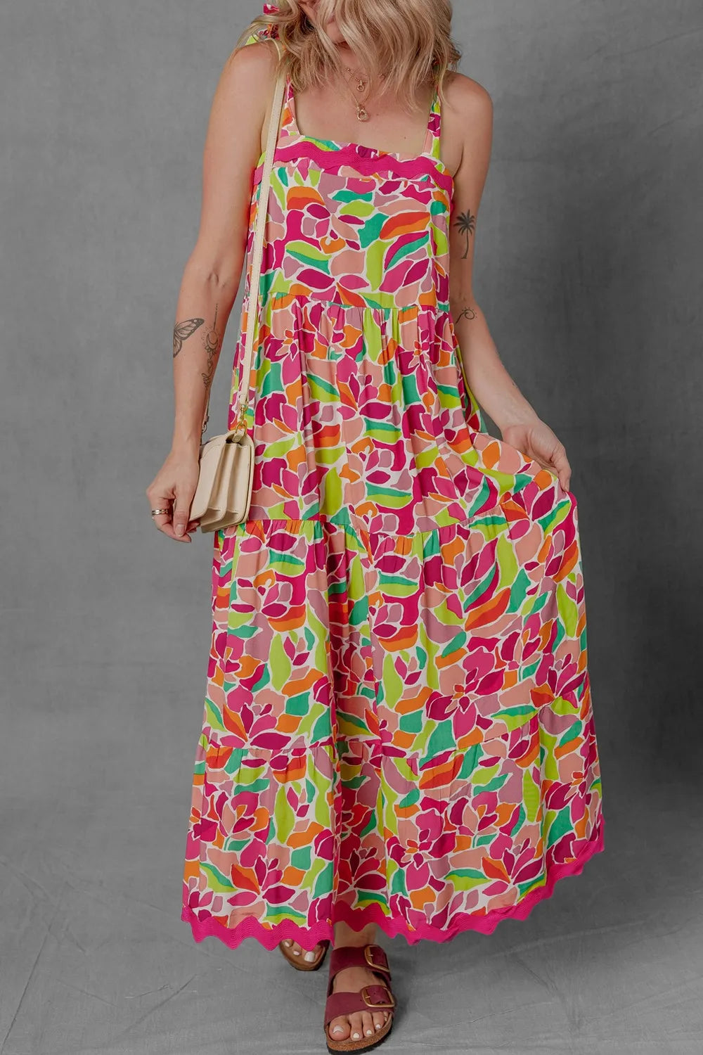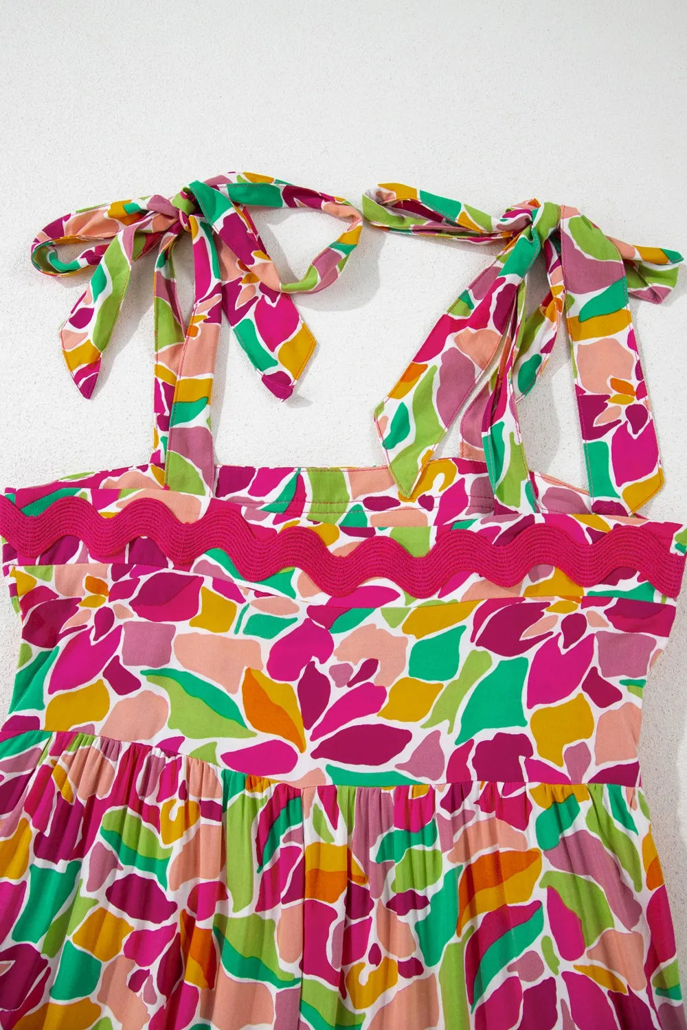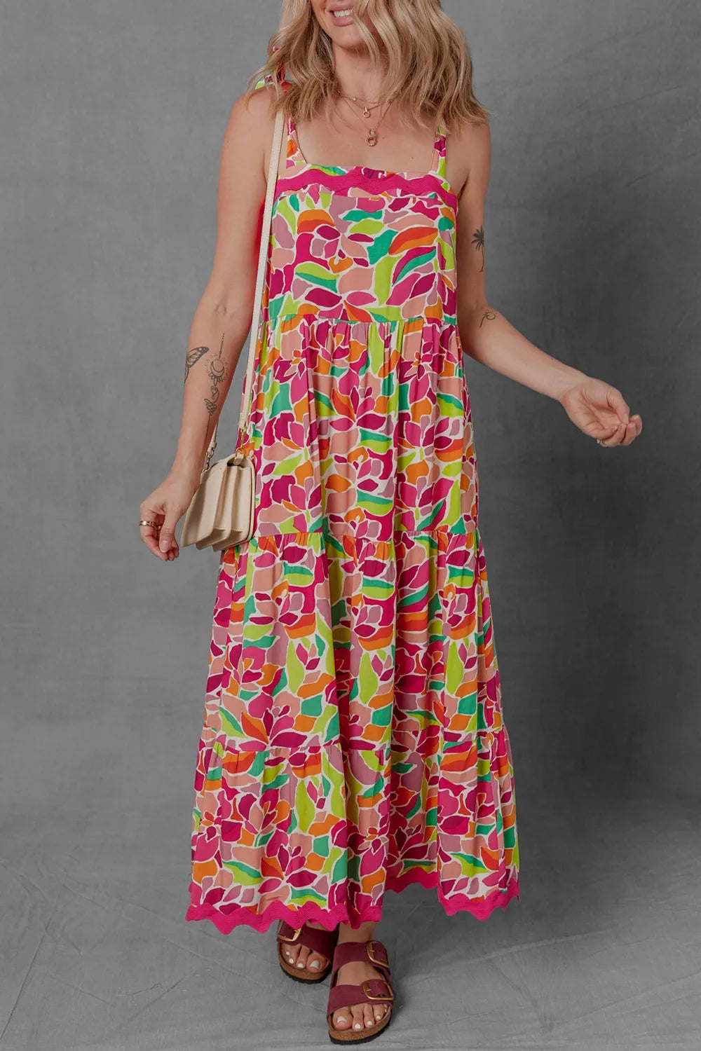 Multicolour Floral Tied Straps Ricrac Trim Maxi Dress