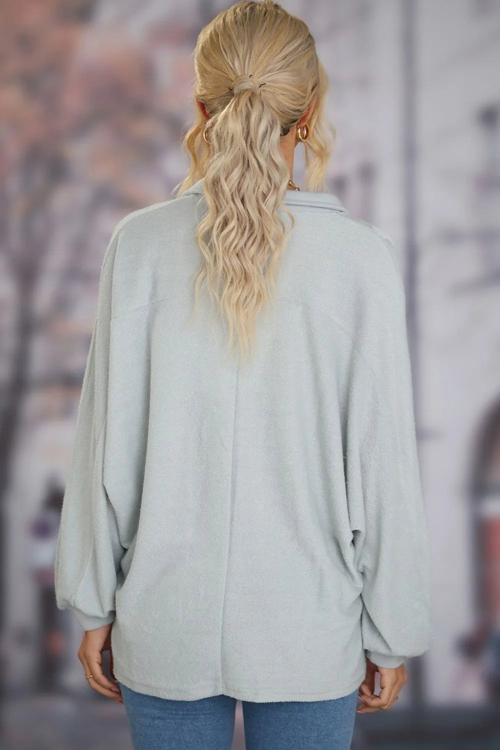 Full Size Half Button Collared Neck Long Sleeve Sweatshirt
