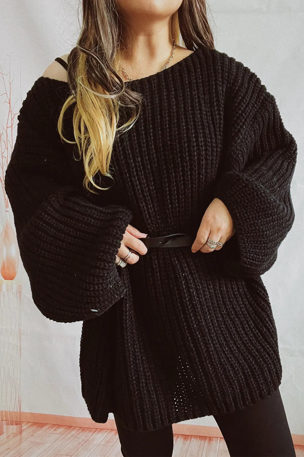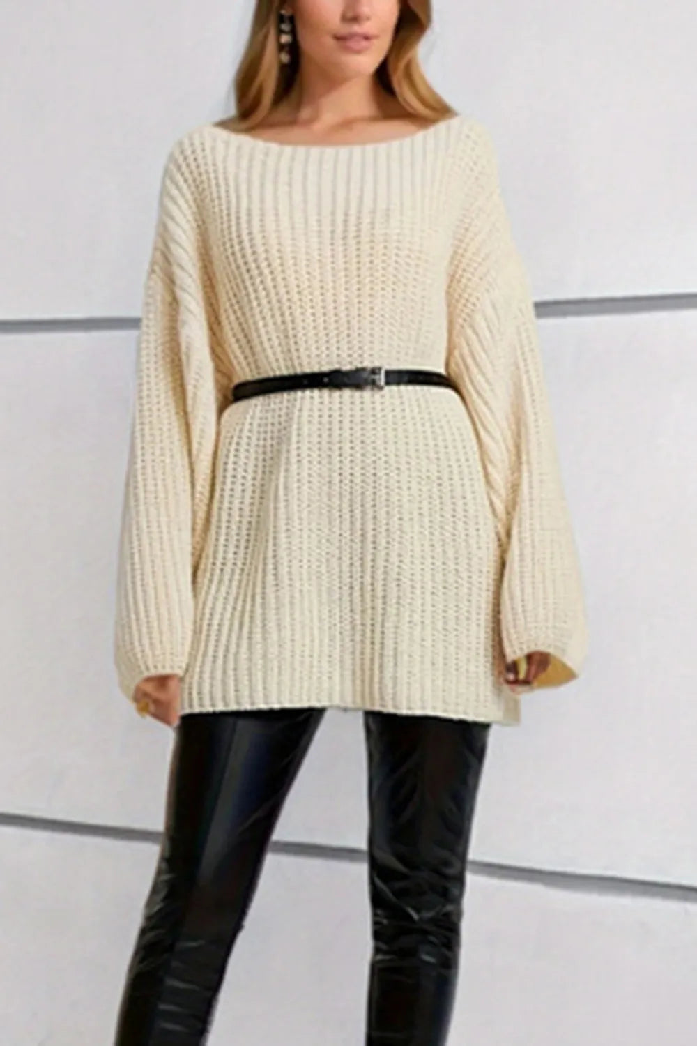 Velste Boat Neck Dropped Shoulder Mini Sweater Dress