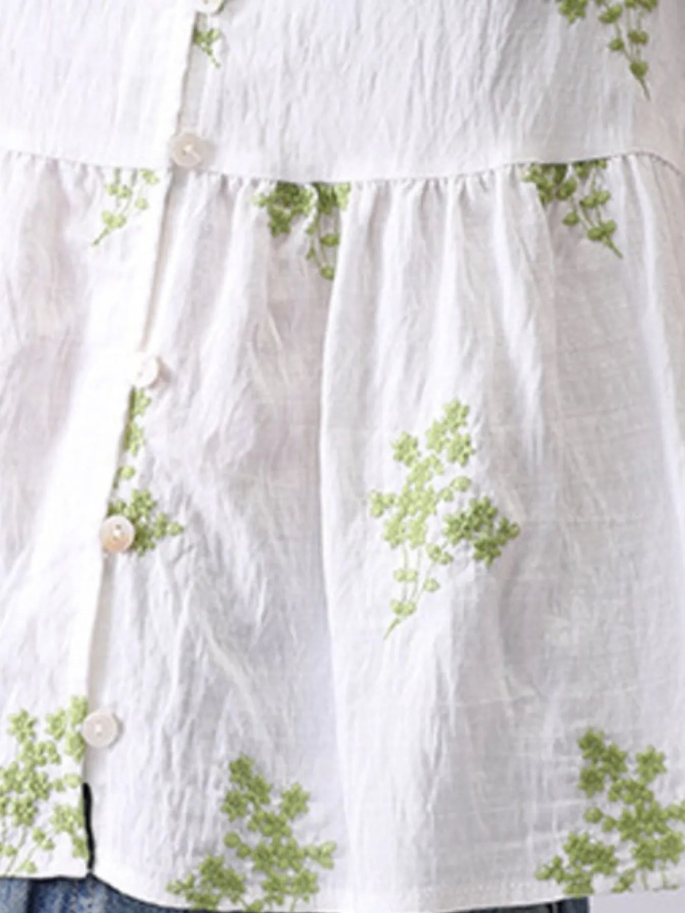 Embroidered V-Neck Puff Sleeve Peplum Blouse