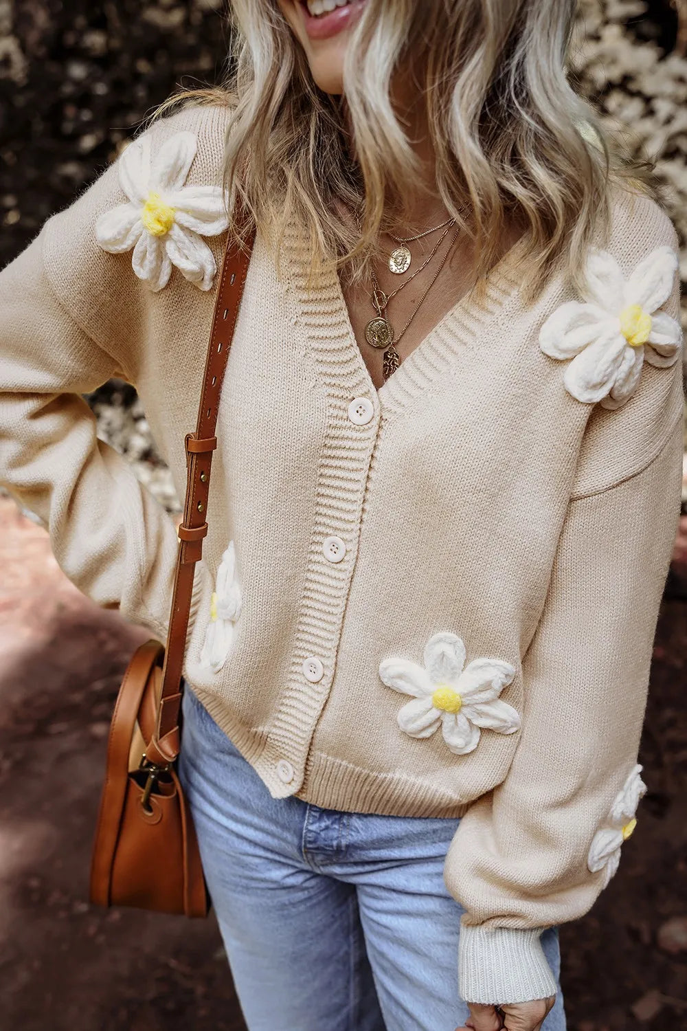 Velste Flower Dropped Shoulder Long Sleeve Cardigan