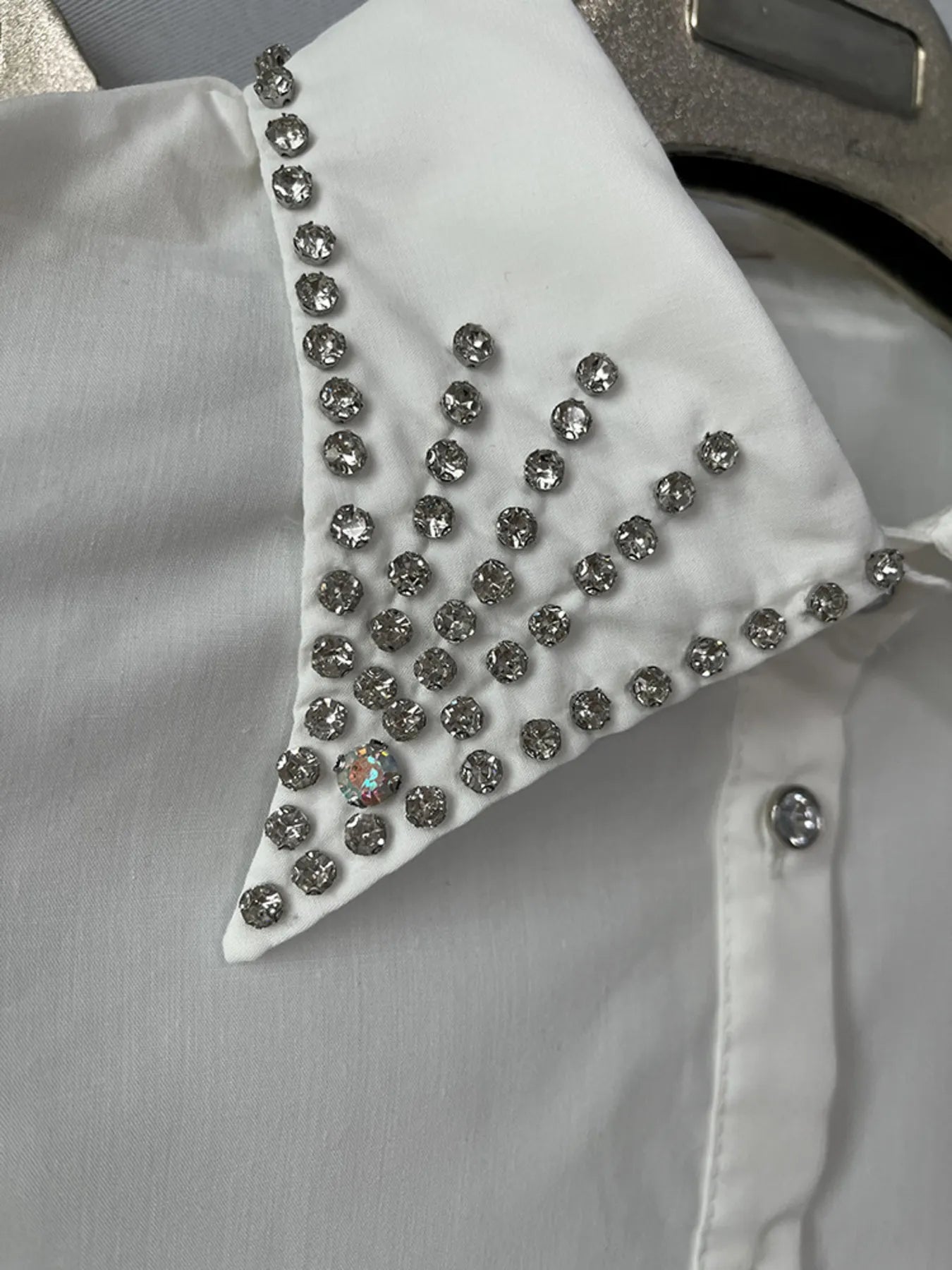 Puff Sleeve Button-Up Shirt with Rhinestone Detail