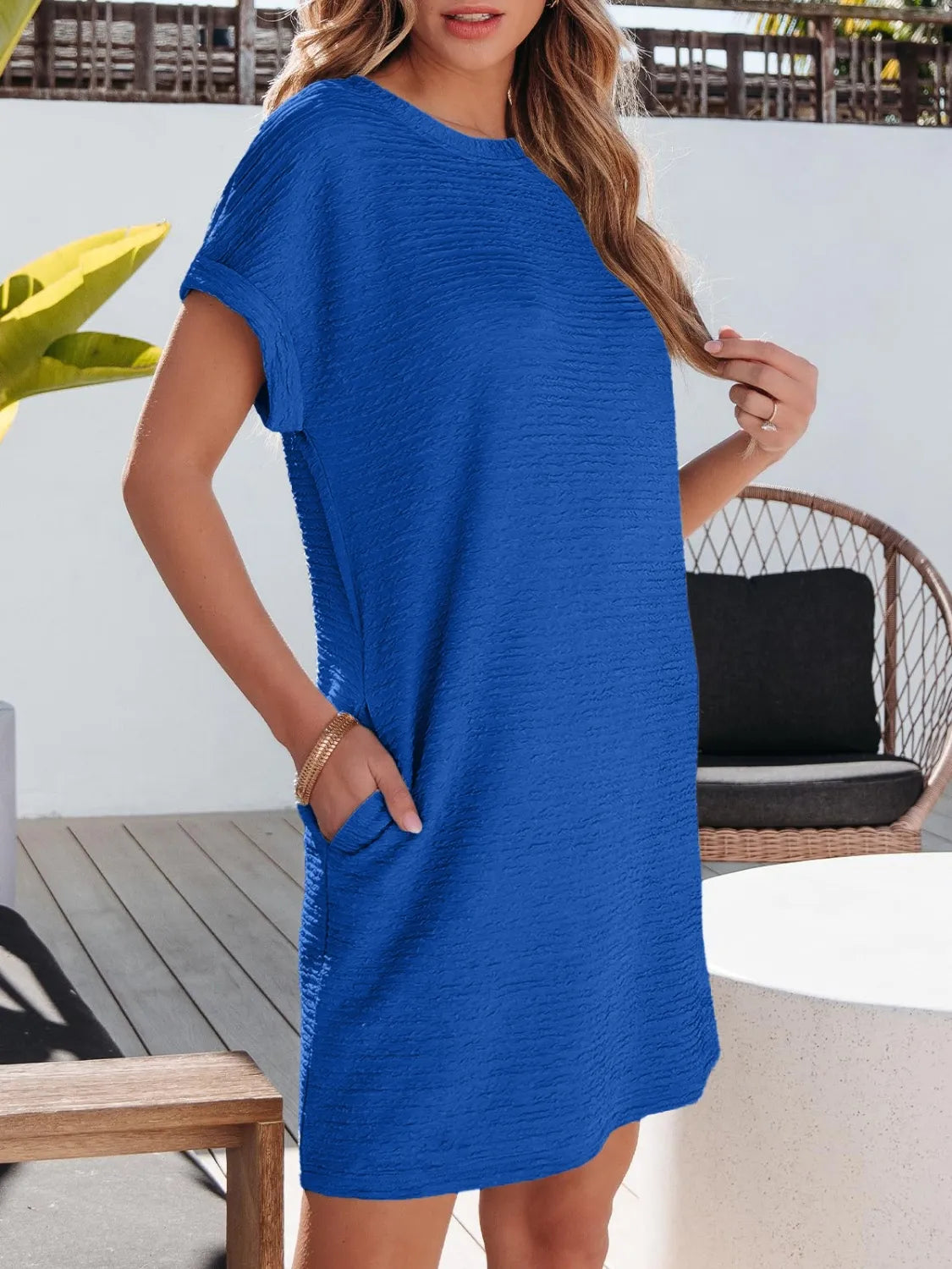 Round Neck Short Sleeve Mini Tee Dress