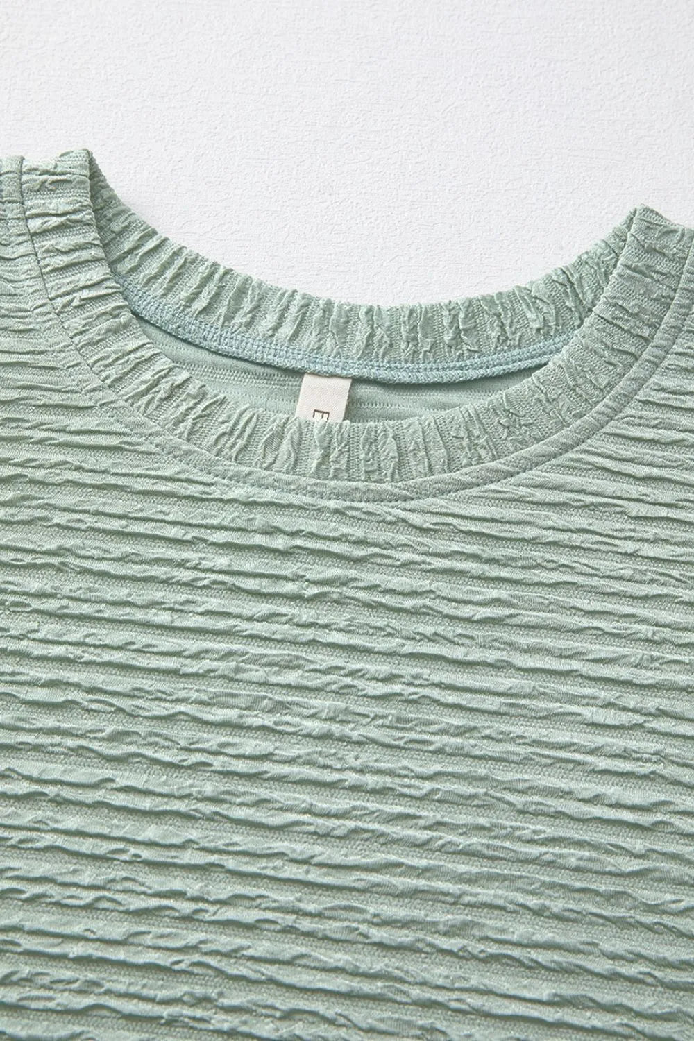 Solid Color Textured Crinkle Short Sleeve T Shirt Dress