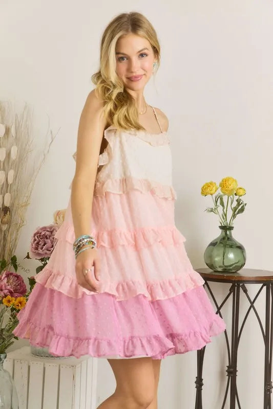 ADORA Swiss Dot Ruffled Tiered Mini Dress